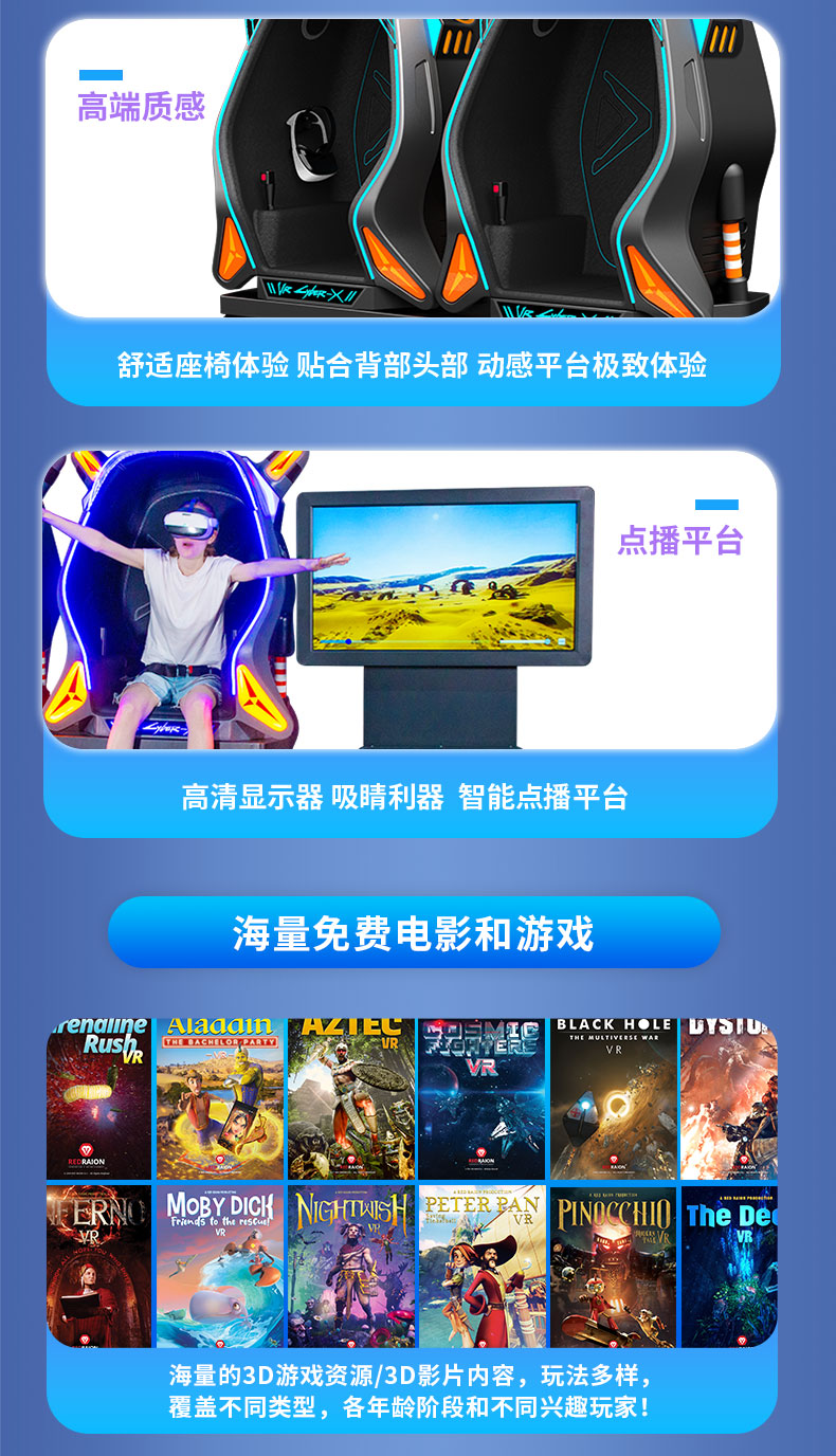 ? 全方位的動感平臺,高度配合的影片 / 游戲 VR 內容 , 打造身臨其境般的游戲體驗。